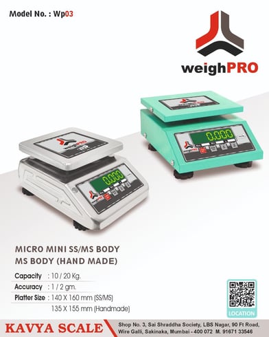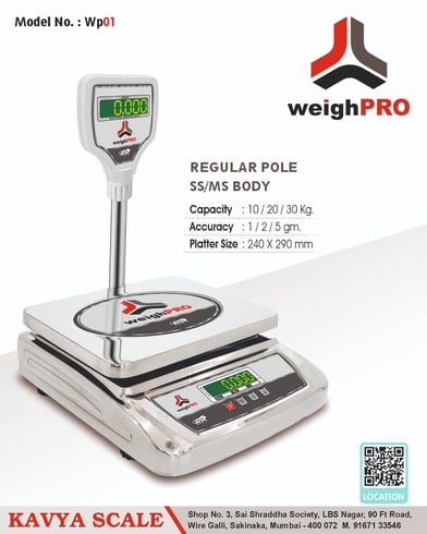 Founded in 2005, Kavya Scale (Weigh Pro) Company is recognized as a premier Manufacturer, Exporter, Supplier, Trader, and Wholesaler of high-quality weigh scale machines, including Electronic and Mechanical Weighing Scales, and spare parts for both types of scales.